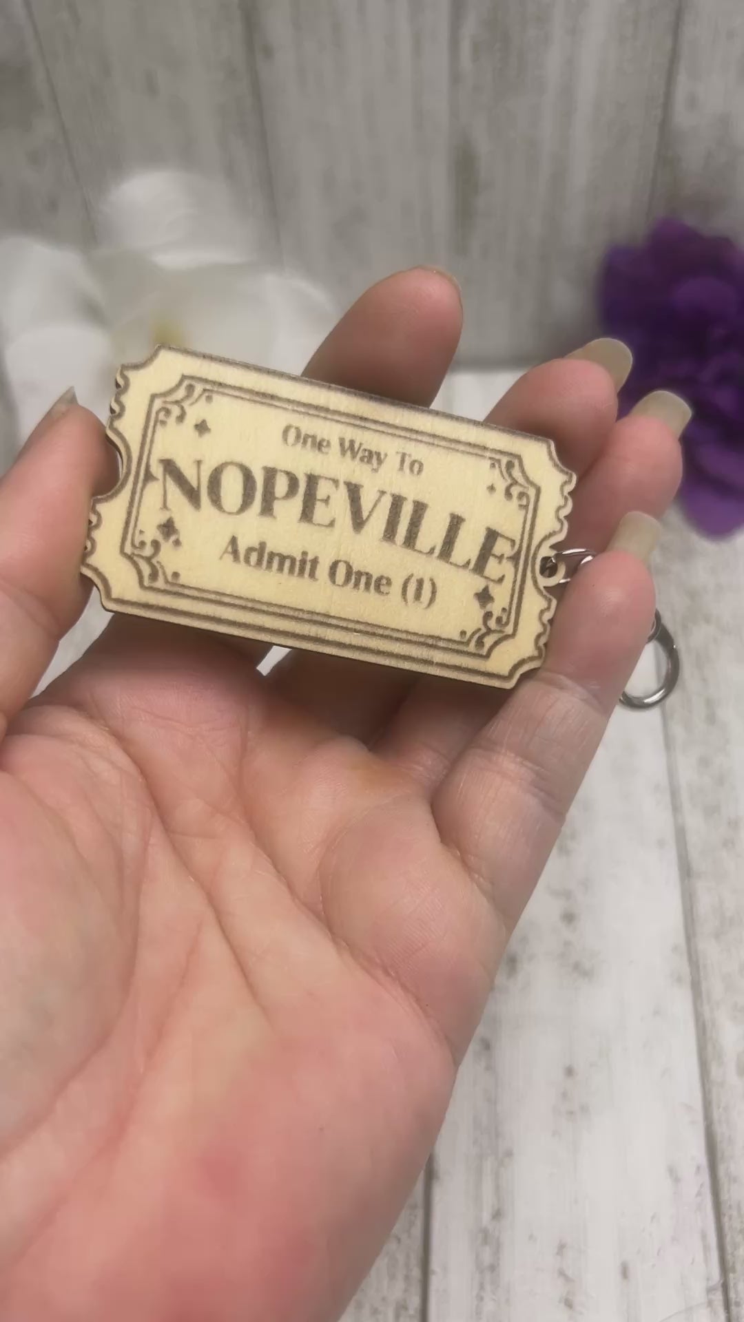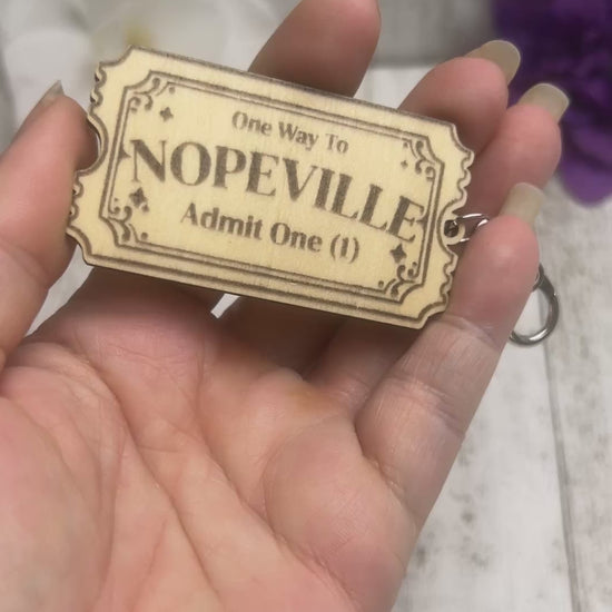 Get ready for a wild ride with our sassy wooden keychain, featuring a 'One Way to Nopeville' admission ticket design. Perfect for those who embrace the chaos and humor of life. Keep your keys organized and your sense of humor intact with this quirky accessory. Admission never looked so good!