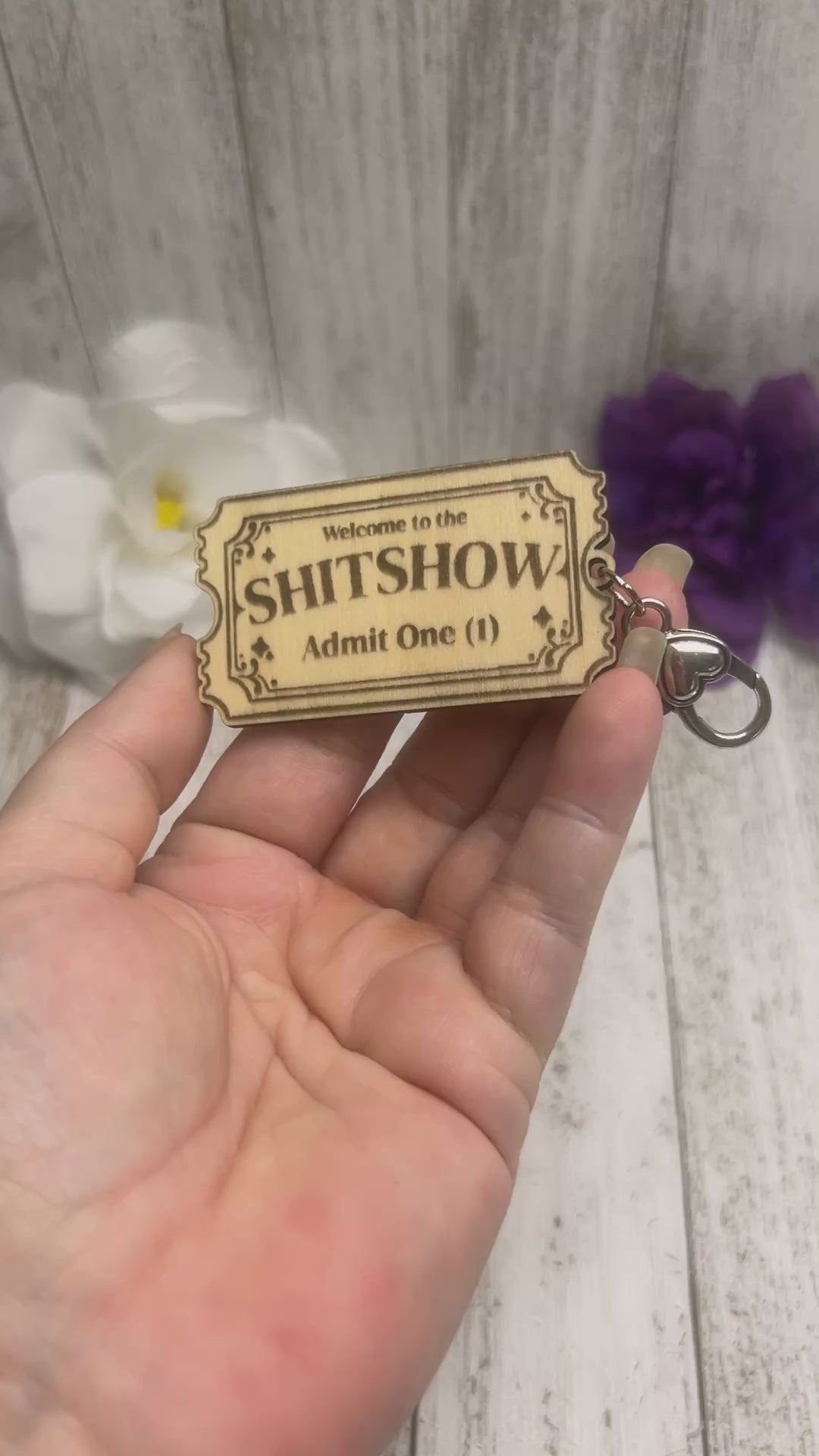 Get ready for a wild ride with our sassy wooden keychain, featuring a 'Welcome to the Shitshow' admission ticket design. Perfect for those who embrace the chaos and humor of life. Keep your keys organized and your sense of humor intact with this quirky accessory. Admission never looked so good!